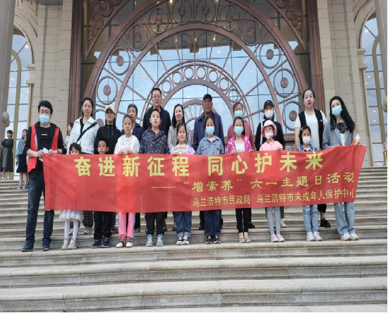 “六一”国际儿童节期间,乌兰浩特市民政局、乌兰浩特市未成年人保护中心开展“奋进新征程 同心护未来”--“增素养”六一主题日活动,活动中20名未成年人及家长参加。